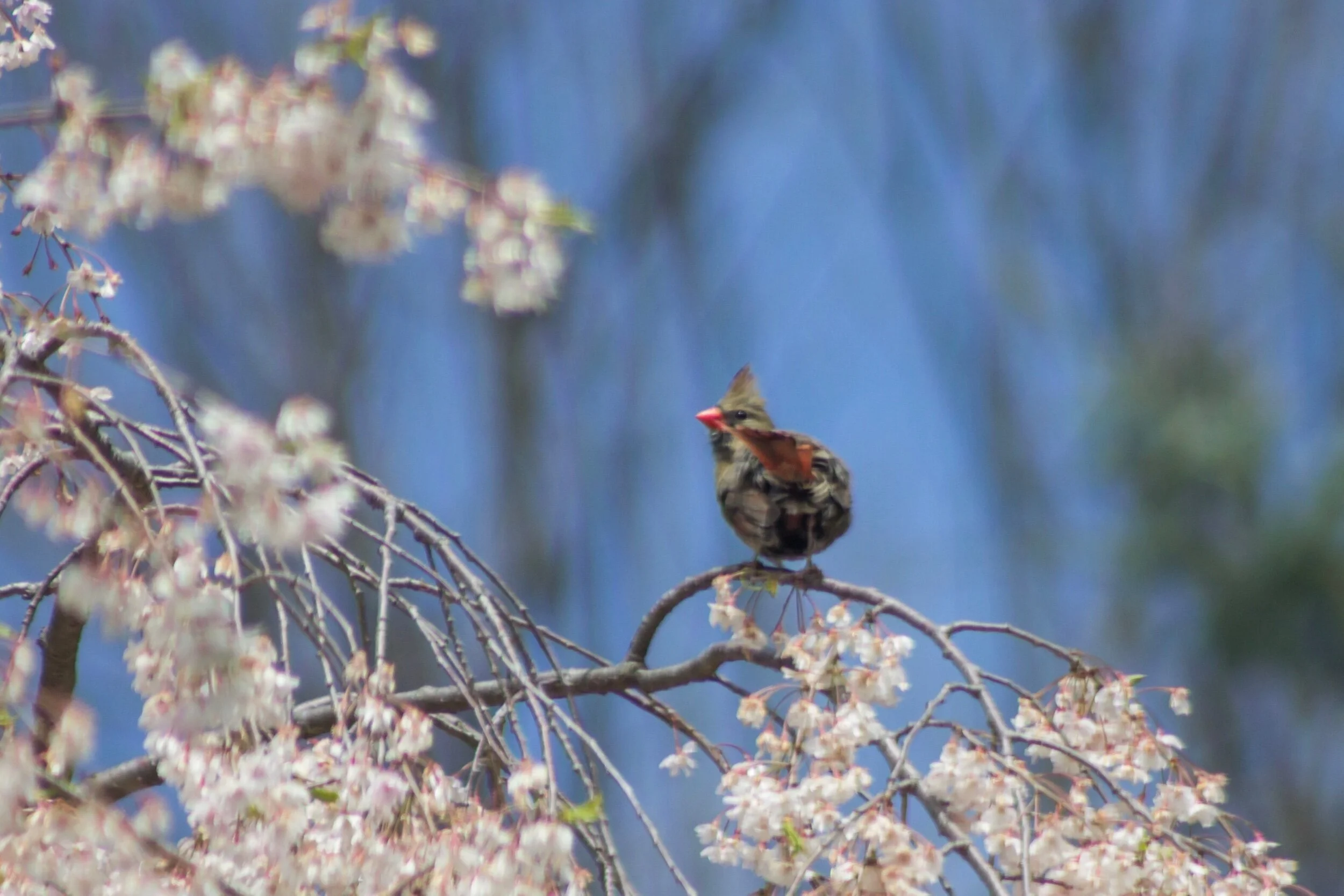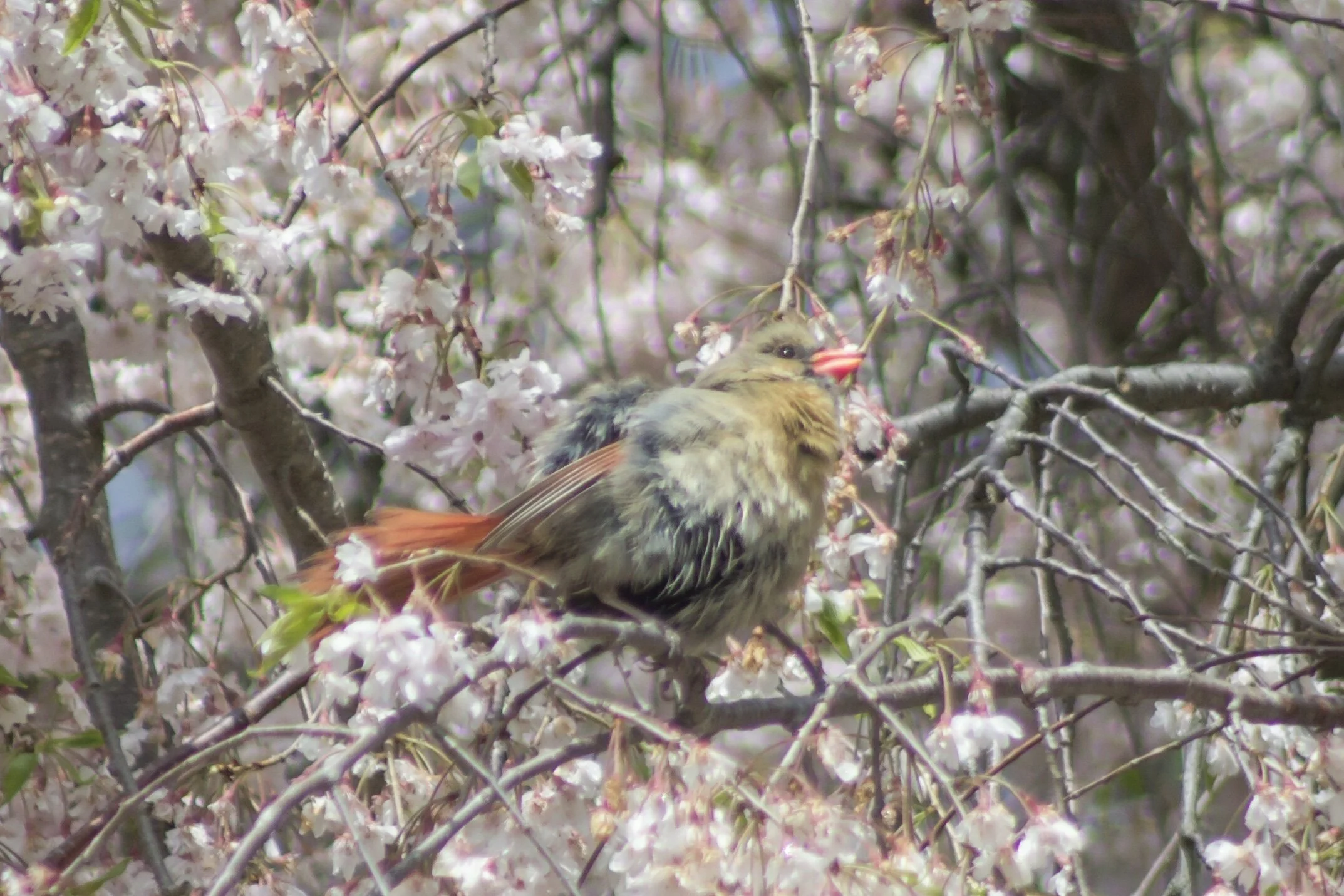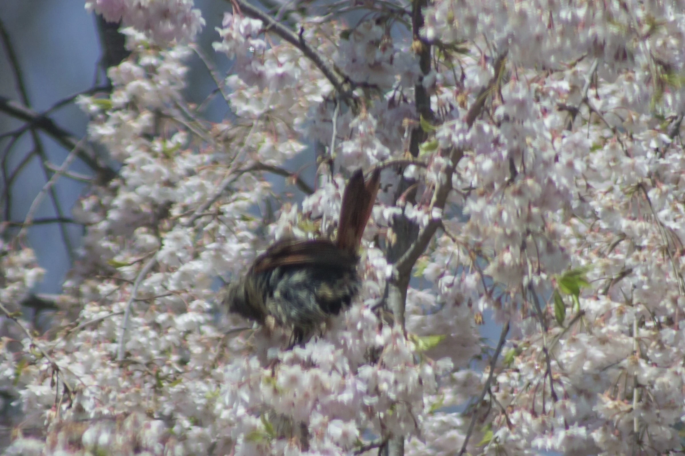/Found this little one taking a bird bath in the wet cherry blossoms after the rain. So fascinating to watch it hop around the tree dunking in and out of the blossoms for its morning bath. Such a cutie... May your day be full of the sweetness of nature. πβ¨π